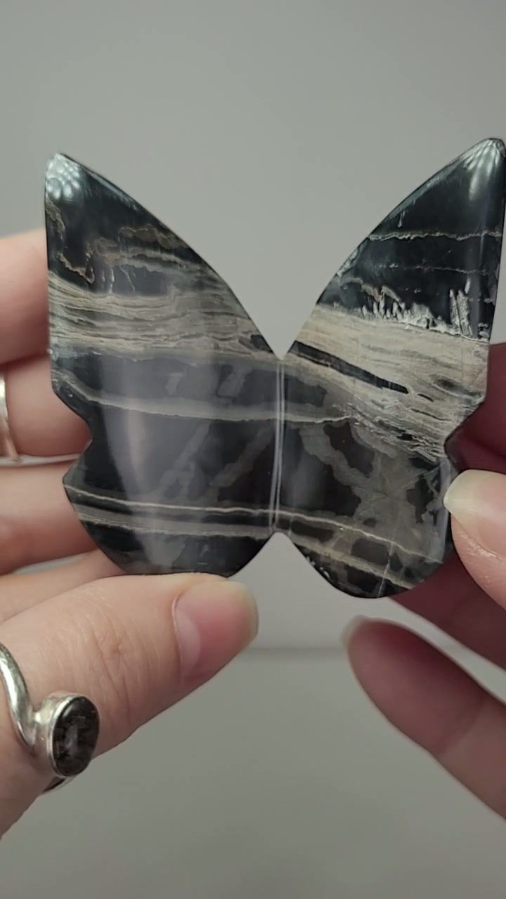 Papillon Calcite striée noire/ Black banded calcite Butterfly #6