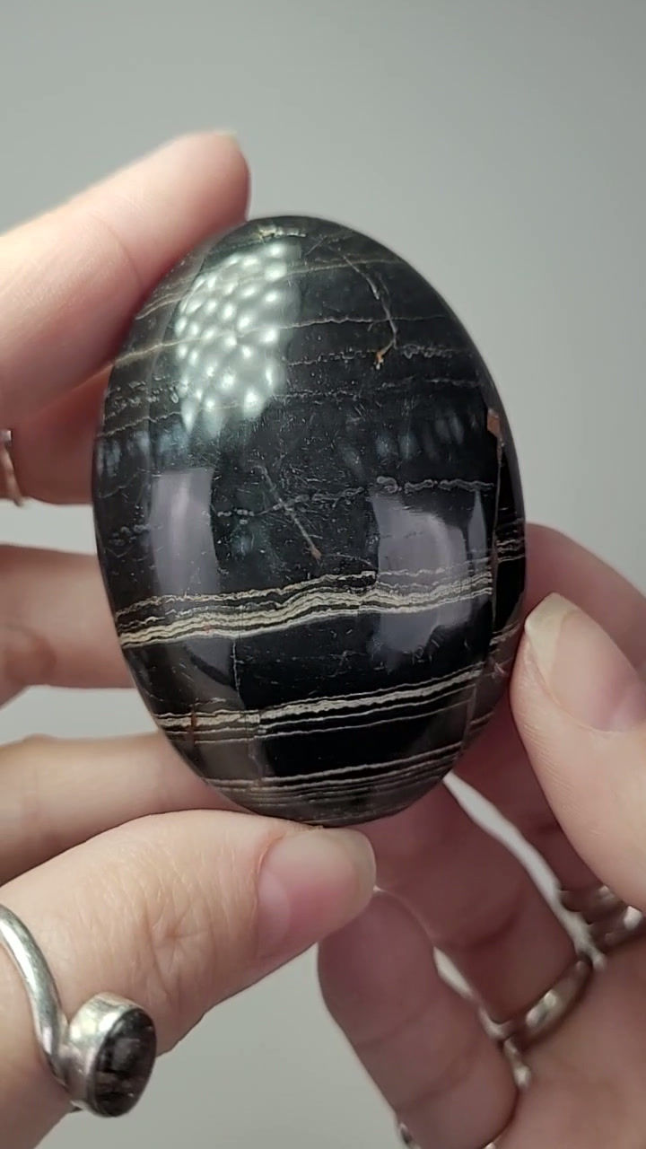 Pierre de paume Calcite Striée noire/ Black banded calcite Palmstone #31