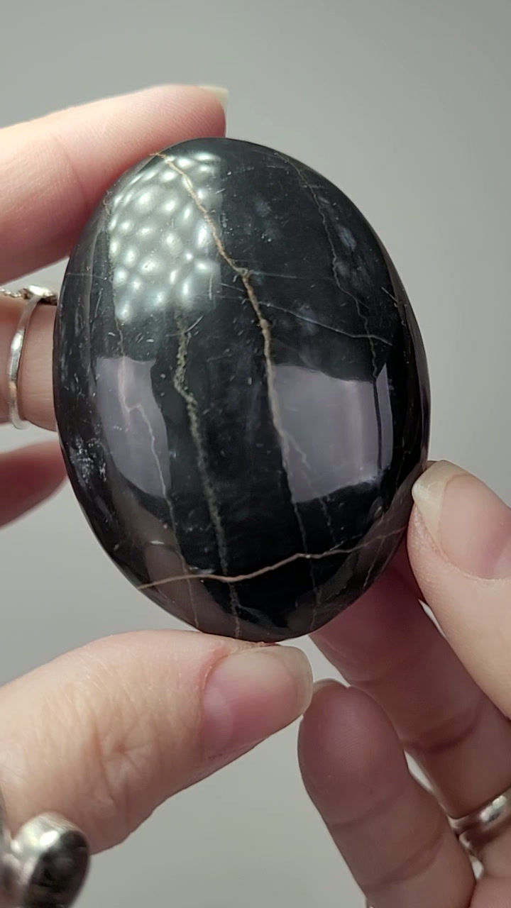 Pierre de paume Calcite Striée noire/ Black banded calcite Palmstone #35